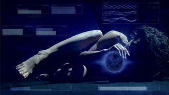 Art has always sought to make visible the invisible, acting as a shared medium to open the isolated interior world of individual consciousness to the minds of others, whether that individual vision be an appraisal of what the eye perceives, an attempt to convey conceptual processes, or a means to invoke emotional states. The technical innovation of the digital arts, with their facility of image creation and manipulation, provides a previously unparalleled means of partaking of another’s vision, a communication that moves beyond many material confines into a realm precariously poised on the brink of shared mind. The visual fusion of the human body and abstract images to create Concert for Shadows 1-10 epitomizes an uneasy sense of seeing through another’s eyes, of dreaming in tandem with another mind. At the same time the work sounds an ambivalent note of alarm about the means that created it, using overt symbols like the oppressive overlay of resonating waveforms and charts or repeated visual cues such as the eponymous shadows that darken this world with a pervading anxiety.